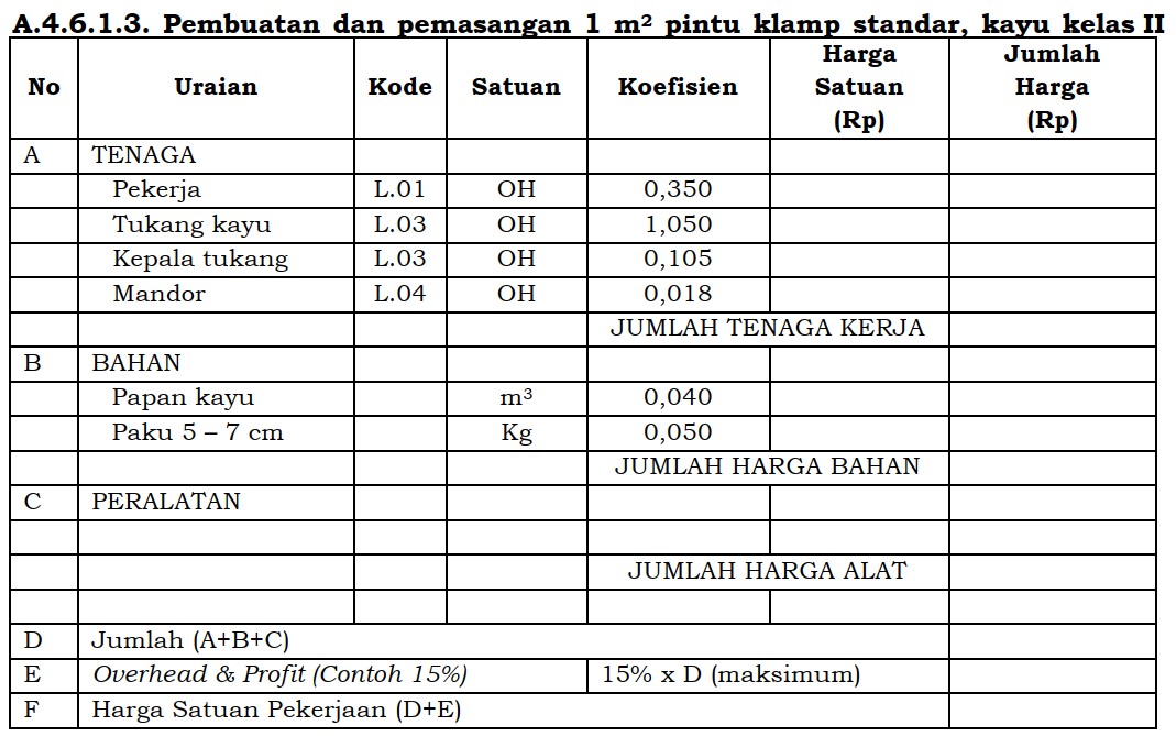 A.4.6.1.3.Pembuatandanpemasangan 1 m2 pintu klamp standar,kayu kelas II