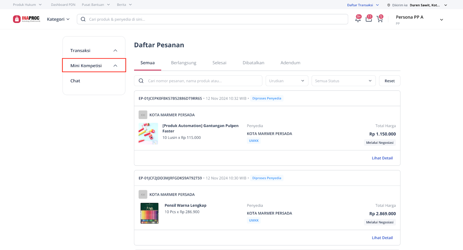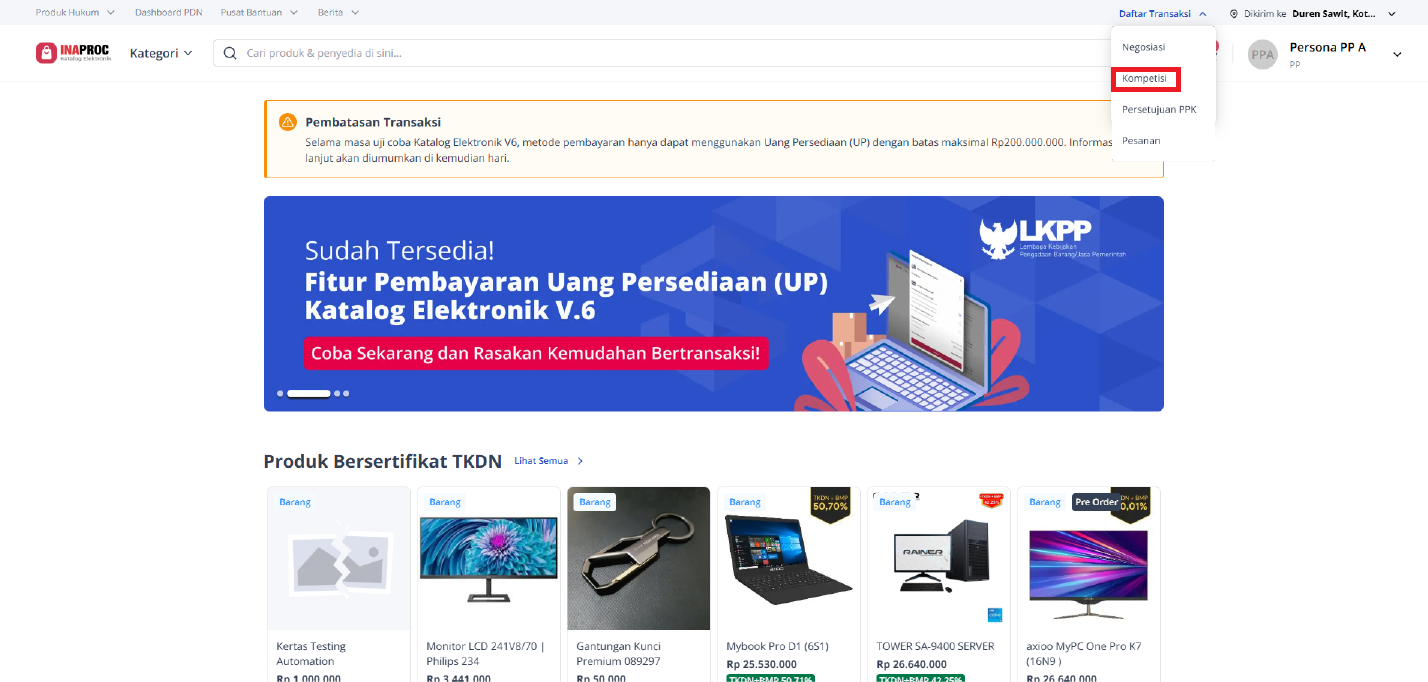 2. PPK/PP dapat memilih menu kompetisi yang ada di daftar transaksi.