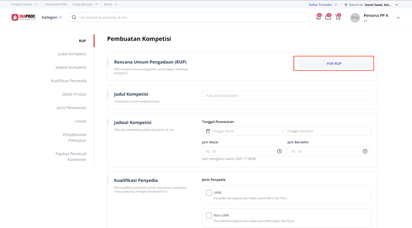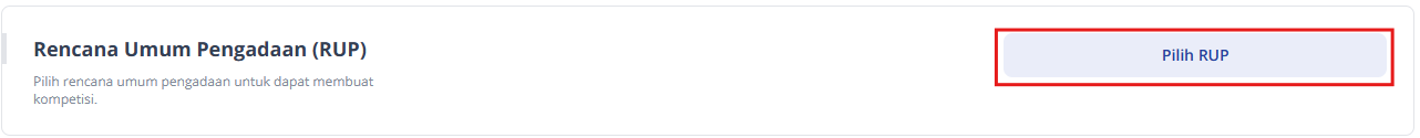Langkah pertama dalam pembuatan kompetisi adalah memilih Rencana Umum Pengadaan (RUP) sesuai dengan kebutuhan yang diperlukan dalam pengadaan ini.