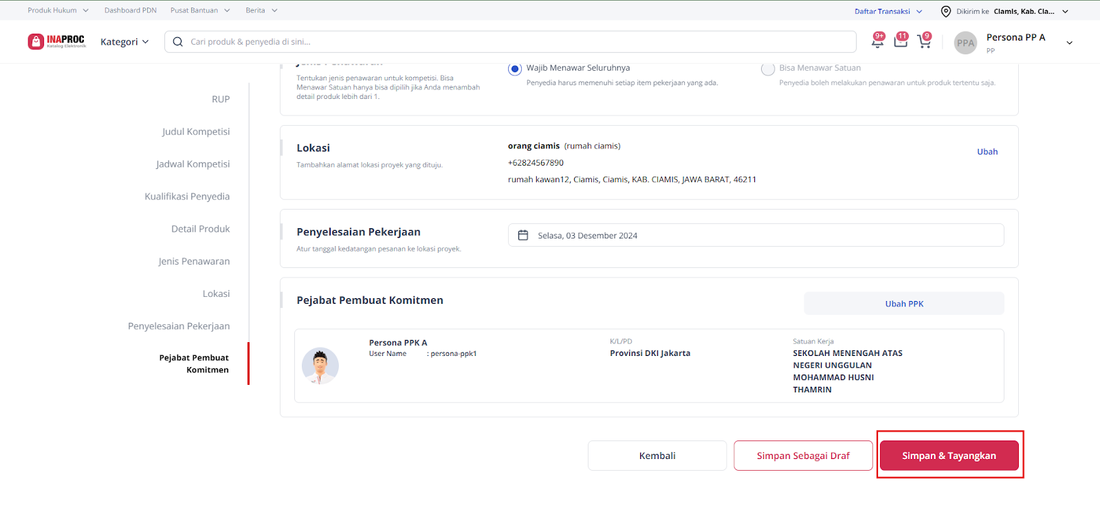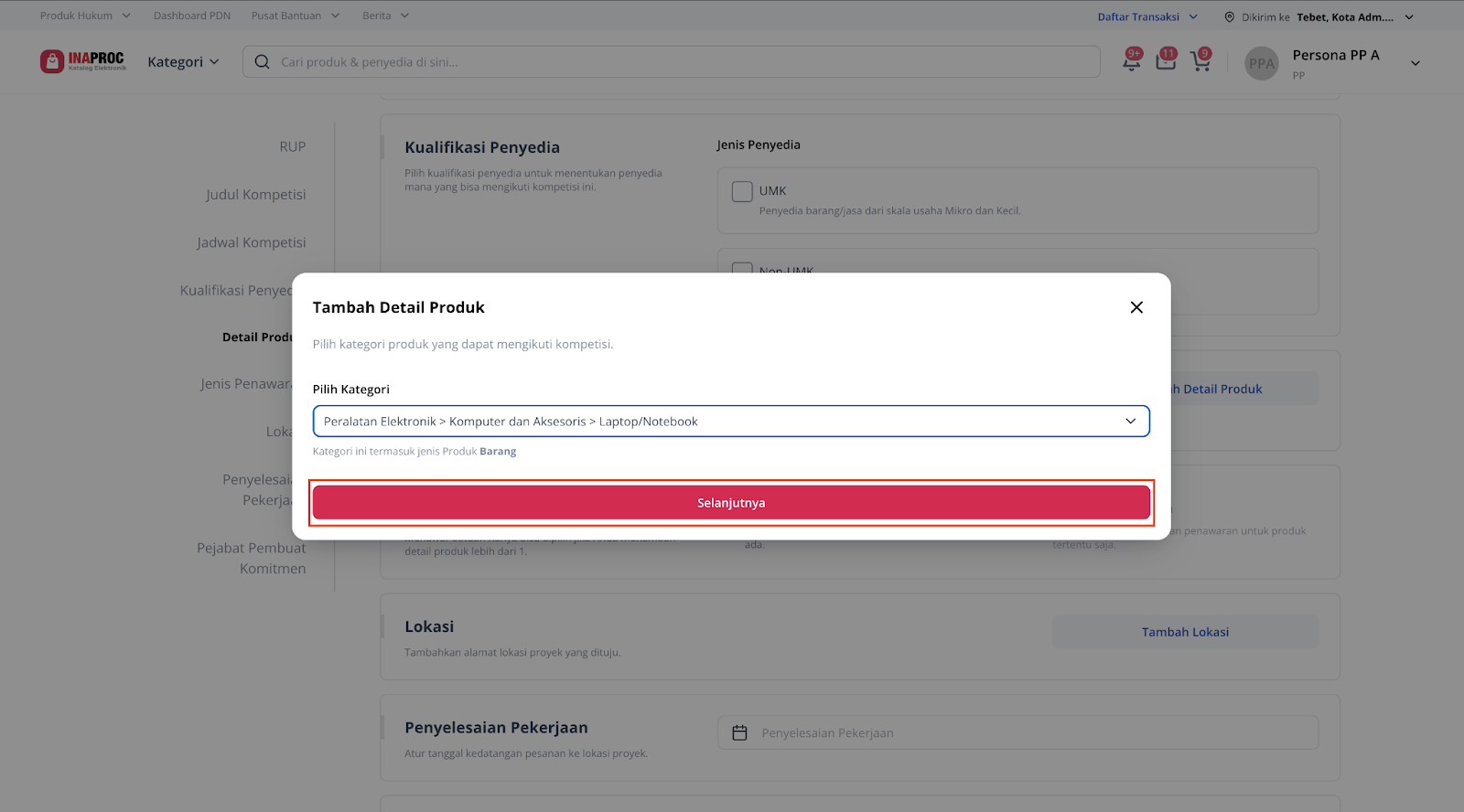 Langkah selanjutnya, PPK/PP memilih tempat di mana lokasi pekerjaan berlangsung..