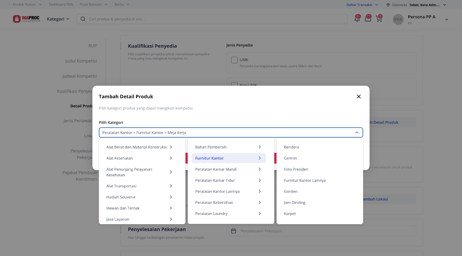 Bisa menawar satuan ini hanya dapat dipilih jika pada saat proses sebelumnya “Menambah Detail Produk” PPK/PP lebih dari satu.