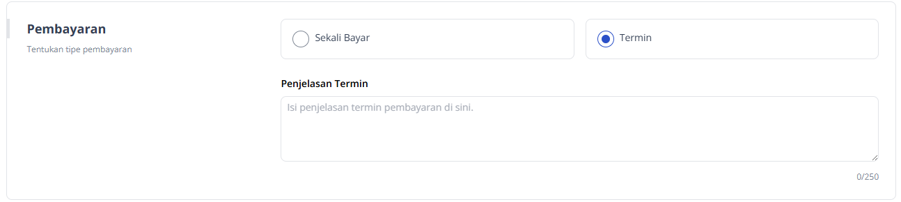 Tipe pembayaran ini dilakukan sekaligus setelah pekerjaan selesai